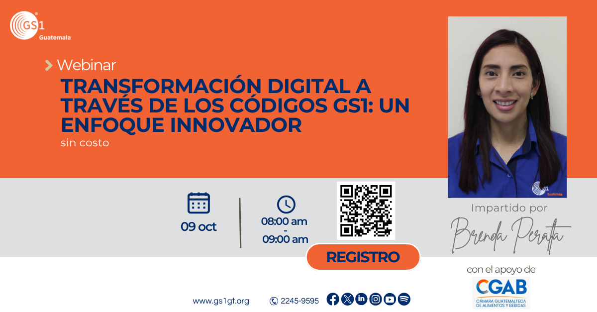 Web Transformación digital a través de códigos GS1: un enfoque innovador Enlace de REGISTRO: https://forms.office.com/r/L5JCfHdXP3 o bien Escaneando el QR Fecha Oct 09 2025 Finalizdo! Hora 08:00 - 09:00 Categoría Eventos Otros Eventos